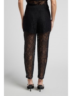 Stile: È un capo da sera o per occasioni speciali, che unisce la struttura formale del pantalone classico alla sensualità del pizzo trasparente
